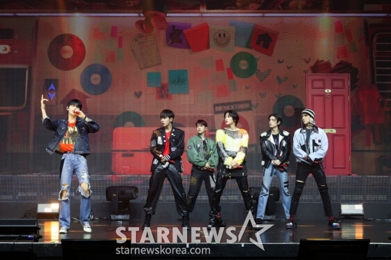 보이그룹 보이넥스트도어(BOYNEXTDOOR)가 4일 오후 서울 광진구 광장동 예스 24라이브홀에서 미니 1집 'WHY..' 발매 기념 쇼케이스에 참석해 멋진 무대를 선보이고 있다.