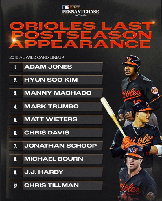 볼티모어가 7년 만에 포스트시즌 진출을 확정하자 메이저리그 공식 SNS는 2016년 와일드카드 게임 당시 볼티모어의 라인업을 소개했다. 그런데 낯익은 이름이 있었다. 바로 김현수였다. 그는 당시 2번 타자 겸 좌익수로 출전해 4타수 무안타를 기록했다. 7회 말 수비 도중 토론토 팬이 던진 음료수 캔에 맞을 뻔한 위험천만한 상황도 겪었다.