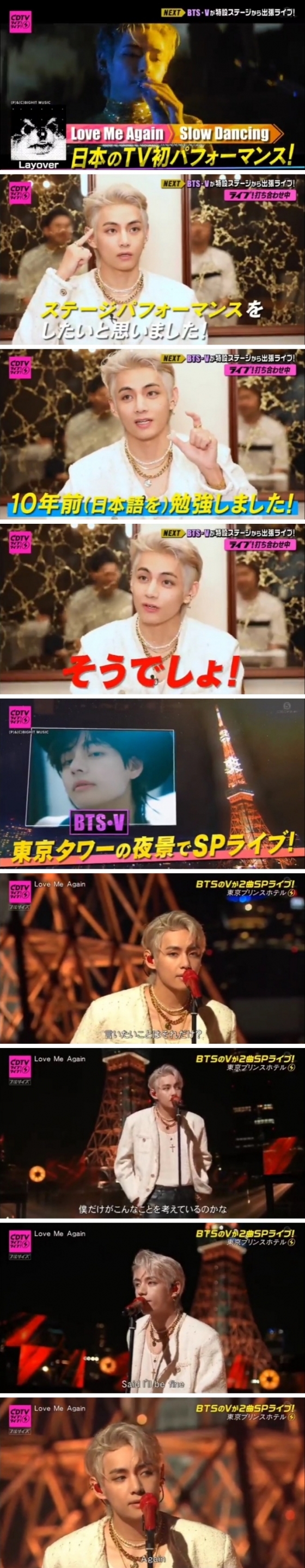 'CDTV 라이브! 라이브!'는 지난 2021년 방탄소년단이 출연한 이후, 2년 만에 뷔는 솔로가수로 변신해 솔로앨범 'LayOver'의 수록곡 'Love Me Again'과 'Slow Dancing' 무대를 선보였다.