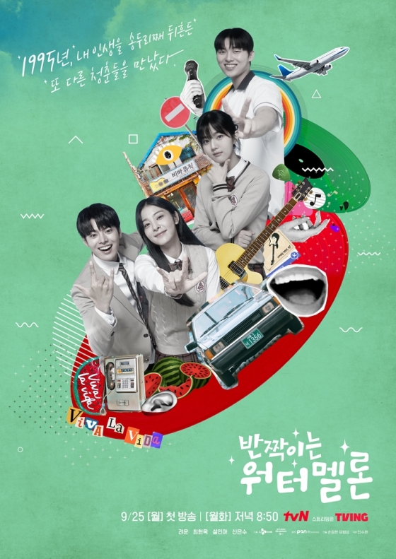 오는 25일 월요일 첫 방송될 tvN 새 월화드라마 '반짝이는 워터멜론'(극본 진수완, 연출 손정현, 유범상, 기획 스튜디오드래곤, 제작 팬엔터테인먼트)이 1995년에서 만난 21세기 청춘 은결(려운 분)과 20세기 청춘들의 발랄한 포즈가 담긴 '반짝이는 1995, 청춘 포스터'를 공개, 모두의 인생을 송두리째 뒤흔들 만남을 예고했다.