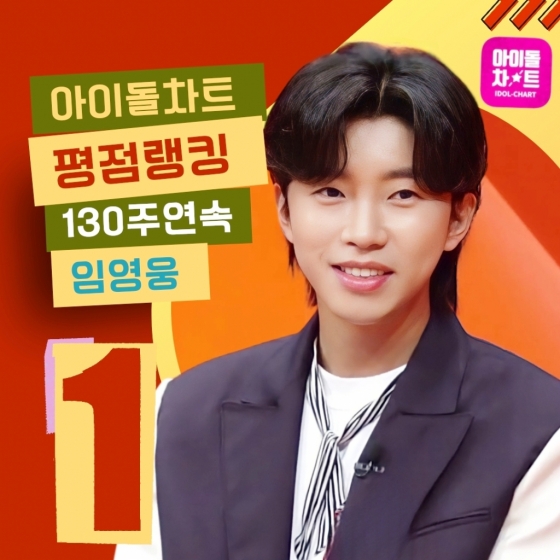 이로써 임영웅은 아이돌차트 평점랭킹에서 130주 연속 1위에 오르게 됐다.