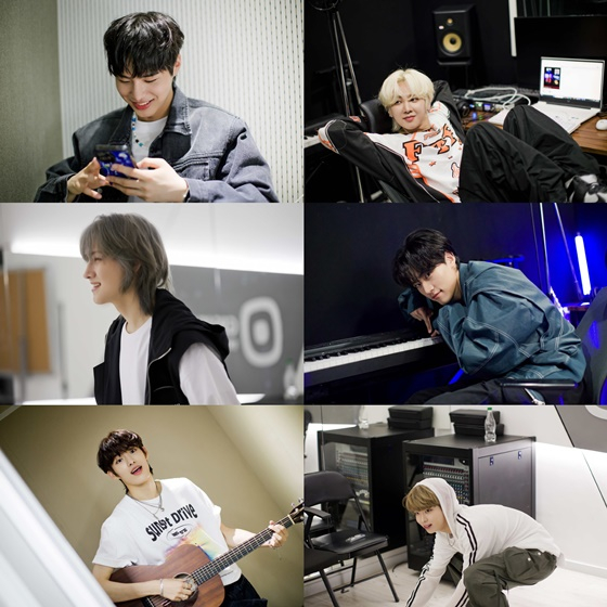 사진 속 멤버들은 각종 악기 및 음향기기가 준비된 연습실에서 즐거우면서도 진지한 모습으로 시간을 보내고 있다. 각자의 자리에서 작업에 열중하는 것은 물론, 예기치 못하게 다가온 카메라에도 당황하지 않고 미소를 건네는 등 자연스럽고 훈훈한 6인 6색 매력을 여과 없이 뽐내고 있다.