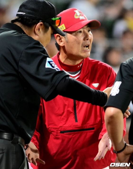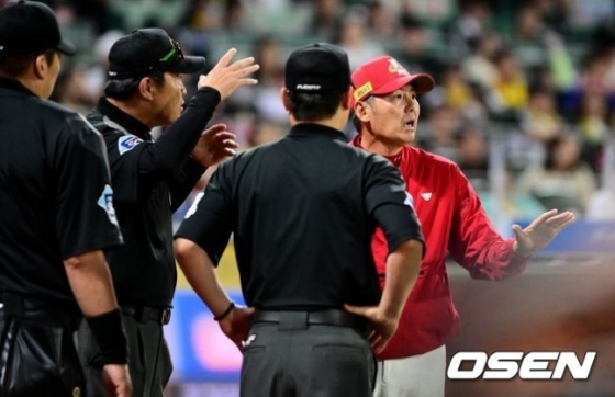 심판진의 판정에 김원형 SSG 감독이 더그아웃을 박차고 나와 격렬하게 항의하기 시작했다. 김 감독은 오후 9시 12분부터 22분까지 10분간 항의를 이어간 끝에 비디오 판독 결과에 따른 항의로 퇴장 조치를 당했다. 당시 KBO는 "박성한의 타구가 1루수 글러브를 스치고 지나가면서 페어가 됐고, 이후 심판을 맞으면서 인플레이 상황으로 이어졌다. 비디오 판독 센터에서는 타구가 심판을 맞으면서 플레이가 멈췄지만, 설사 심판이 바로 페어 선언을 했더라도 한유섬이 2루로 가지 못했을 거라고 판단해 아웃 처리했다"고 공식 입장을 내놓았다.
