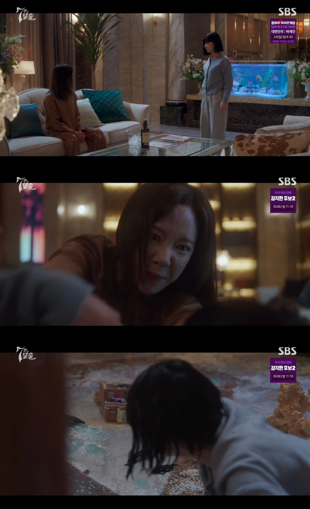 22일 방송된 SBS 드라마 '7인의 탈출'에서는 금라희(황정음 분)가 친딸 방다미(정라엘 분)를 협박했다.
