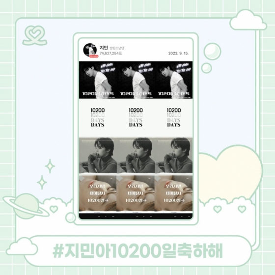 지민의 기념일을 축하하기 위해 글로벌 팬들은 전 세계 언어로 뜻깊은 날을 기념하며 축하 인사를 이어나갔고, 이날 하루에만 7000만 개가 훌쩍 넘는 하트를 쏟아내며 뜨겁게 응원했다.