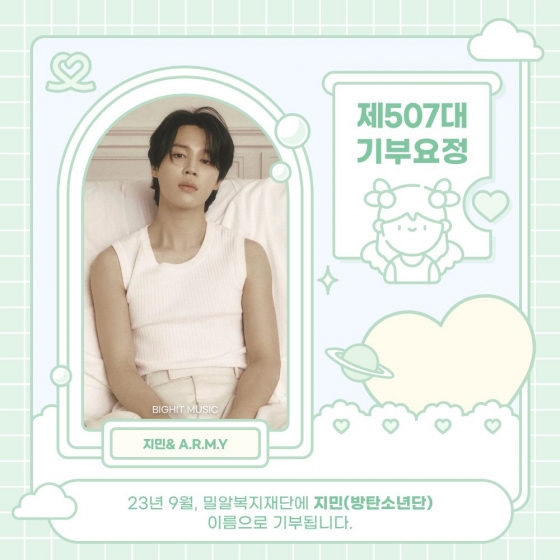제 507대 기부요정에 오른 지민의 이름으로 밀알복지재단에 50만 원의 기부금이 전달된다. 지민은 지금껏 '최애돌'을 통해 기부천사 3회, 기부요정 18회, 이달의 기적 2회를 기록해 누적 기부금 1050만 원을 달성했다.
