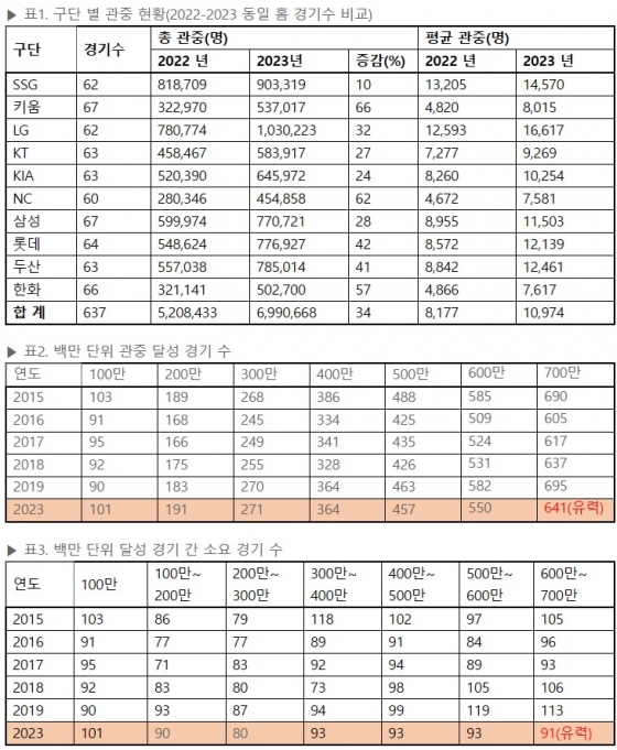 '1위 LG, 100만 관중 유일 돌파' 2023 KBO 리그 700만 관중 초읽기
