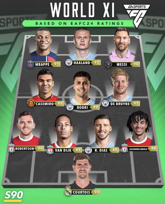지난 23일(한국 시간) 축구 콘텐츠를 제작하는 ‘score90’은 축구 게임 ’EAFC 24’에서 가장 높은 능력치를 받은 선수들로 베스트 11을 구성했다.