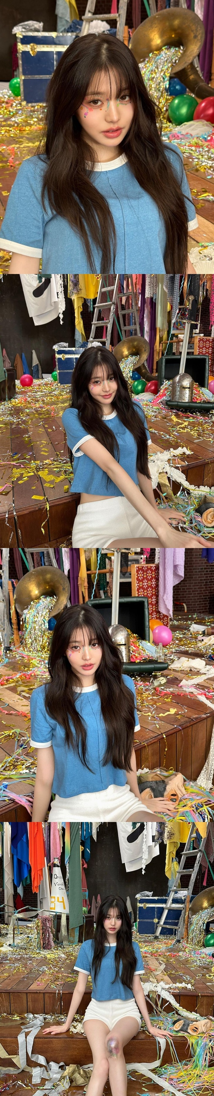 공개된 사진 속 장원영은 얼굴 중안부에 페이스 페인팅을 하고 다양한 포즈를 취하고 있다. 특히 풍성한 웨이브와 매혹적인 표정, 반짝이는 눈망울, 앵두 같은 입술로 완성형 미모를 과시하며 독보적인 오라를 뿜어냈다.