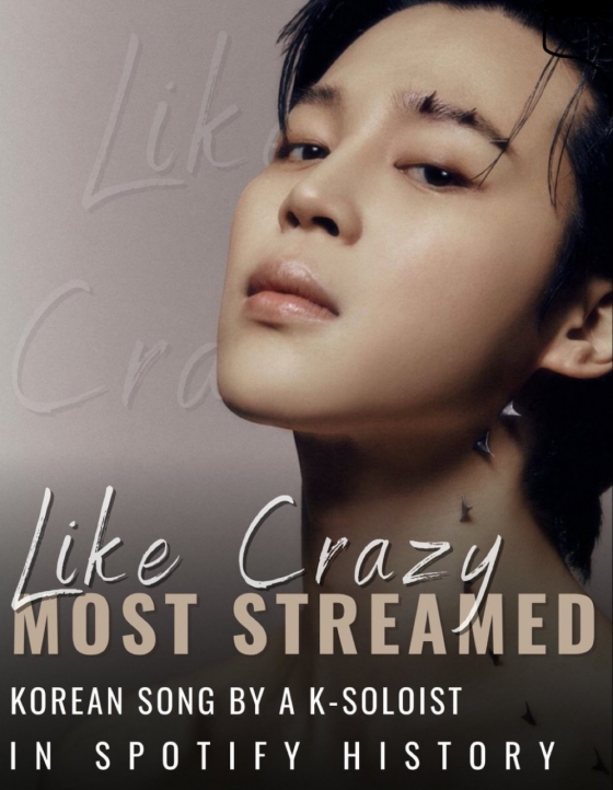 방탄소년단(BTS) 지민이 K팝 솔로 가수로 스포티파이에서 역사적 이정표를 세웠다.
