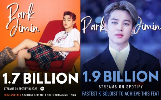 지난 14일, 지민의 스포티파이 공식 프로필 스트리밍이 2023년 단일 연도 17억을 돌파했으며 이는 K팝 솔로 가수 중 최초이자 유일한 기록으로 지민의 음원 파워를 명확히 드러내는 성과이다.