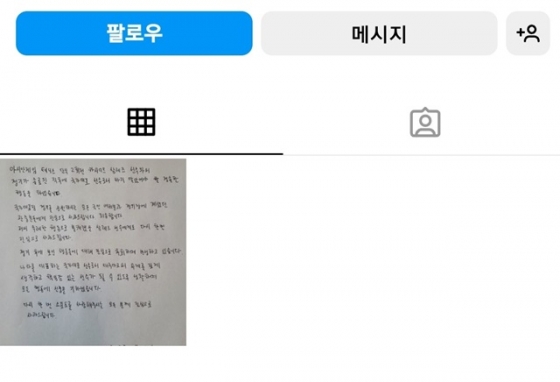 27일 기준, 권순우 SNS 게시물은 모두 지워진 상태다. 오직 자필로 쓴 사과문만 남겨 놓았다.