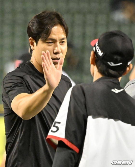 8회말 KT는 '클로저' 김재윤까지 올리며 총력전을 펼쳤다. 김재윤은 홍창기에게 좌전 안타를 내준 뒤 박해민의 희생번트와 함께 1사 2루 상황을 맞이했으나, 정주현을 헛스윙 삼진, 오스틴을 2루수 뜬공으로 각각 아웃시키며 위기를 넘겼다. 9회초. 여전히 3-0으로 앞선 LG. 투수는 유영찬이었다. 유영찬은 1사 후 김상수에게 볼넷을 허용한 뒤 2사 후 박병호에게 볼넷을 내주며 1, 2루 위기에 몰렸다. 하지만 대타 황재균을 우익수 깊은 뜬공으로 처리하며 이날 2연승의 마침표를 찍었다.