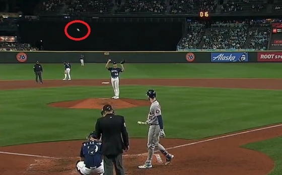 황당한 사태에 경기장엔 야유가 퍼졌고, 스캇 서비스 시애틀 감독은 심판에게 다가와 어떻게 된 일인지 물어보는 몸짓을 했다. 중계화면에서 보여진 영상에서는 3루 쪽에서 공이 날아온 것으로 보였다.