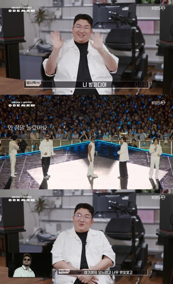 하이브 방시혁 의장이 그룹 지오디(g.o.d) 25주년을 축하하기 위해 깜짝 등장했다.