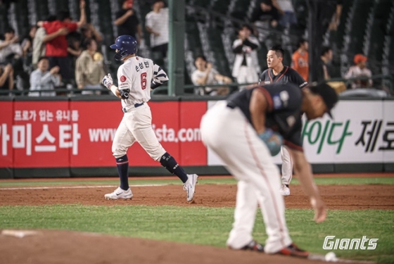 손성빈은 "짜릿했다. 그라운드를 도는데 한 바퀴가 이렇게 긴 줄은 몰랐다"며 홈런의 순간을 돌아봤다. 그는 "산체스 선수가 보더라인 끝에 걸치면서 너무 잘 던졌다. 앞선 두 타석에서 타이밍이 늦어서 타석 포커스를 앞에 두고 '늦지 말자' 생각했는데 결과가 좋았다"고 말했다.