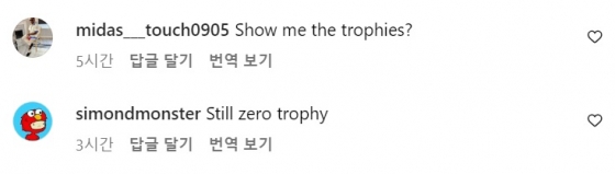 ‘우승 트로피를 보여달라’, ‘아직까지 트로피가 없다’는 등의 반응을 보였다.
