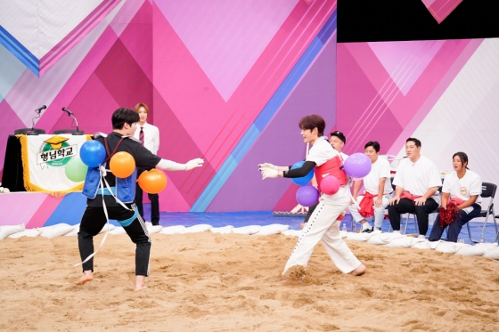 이날 제로베이스원 김지웅과 박건욱은 씨름 부전승 선수를 뽑기 위한 팀 대결에서 승부를 펼친다. 긴장감이 감도는 가운데, 박건욱은 맏형 김지웅에게 "'아는 형님'에서는 동갑이니 형님이라고 봐주지 않겠다"며 박력 넘치는 각오를 전해 현장 분위기를 한껏 띄웠다는 후문이다.