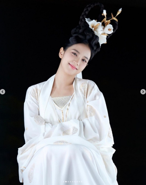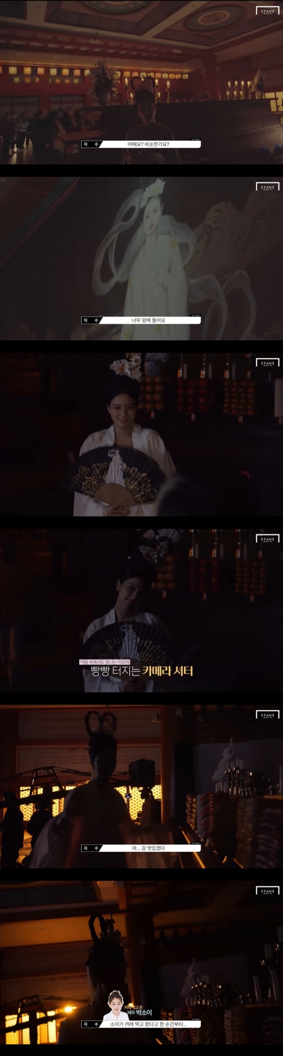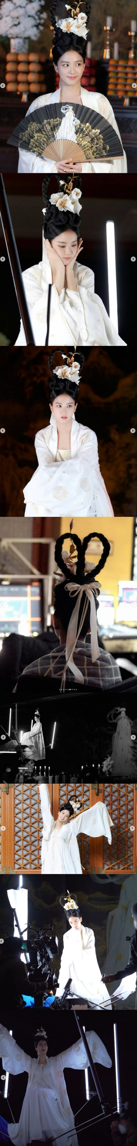 지수는 도도하고 우아하게 선녀가 강림한 모습을 촬영하며 프로페셔널한 모습도 보였다.
