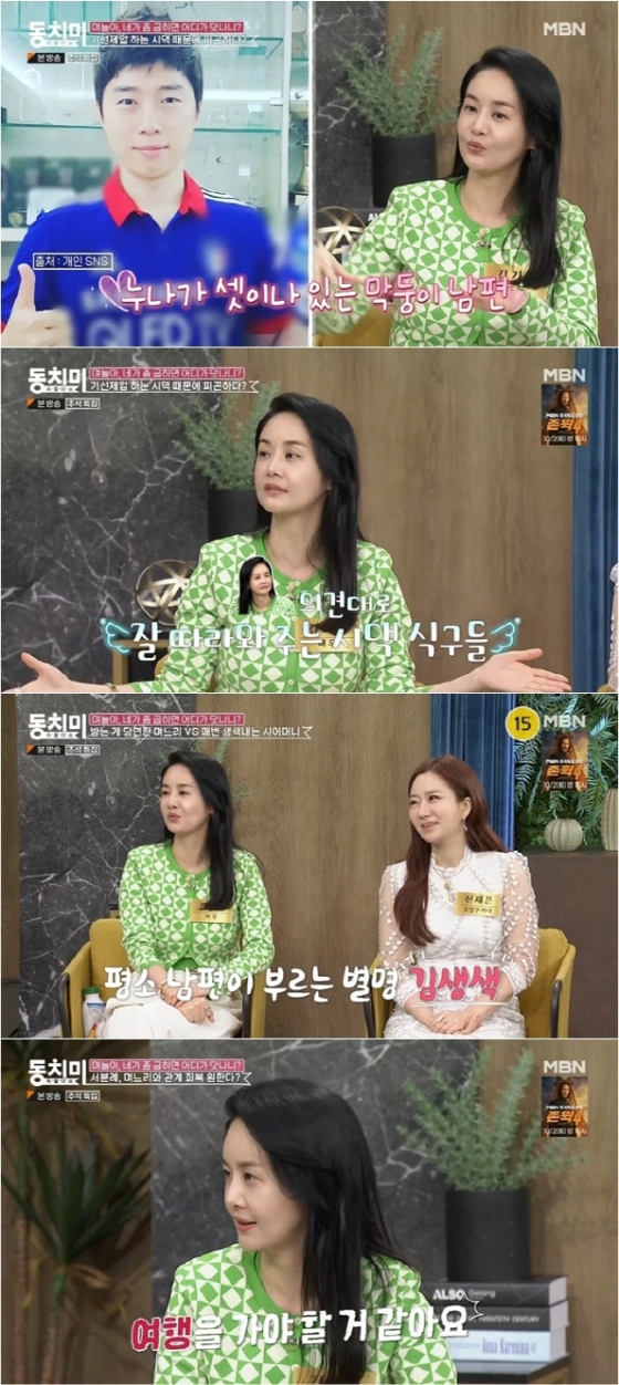 생색을 내는 편이냐는 질문에는 "저는 생색 엄청나게 내는 편이다. 평소 남편이 저한테 김생색이라고 부른다"라며 "저는 누군가에게 전하는 나의 마음에 대해서 다시 표현을 받고 싶은 마음 때문에 생색을 낸다. 내가 해준 음식을 먹고 그 사람이 칭찬을 해주면 기분이 좋아진다. 그래서 제가 행복하기 위해서 생색을 내곤 한다"라고 전했다.