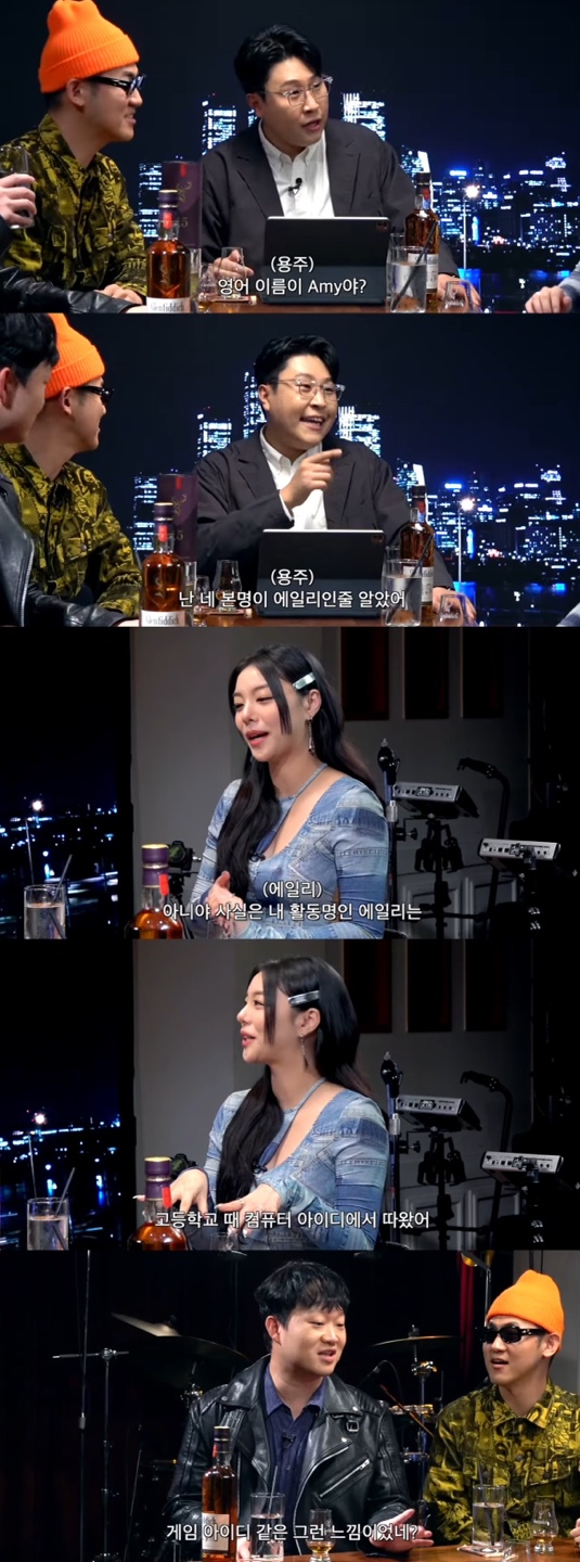 또 에일리는 본명인 영어 이름이 'AMY LEE'라고 밝혔다. 이를 들은 호스트 이용주는 "난 그동안 네 본명이 에일리인 줄 알았다"라고 답했다. 이에 에일리는 "사실 내 활동명인 '에일리'는 고등학교 때 컴퓨터 아이디에서 따왔다 "라며 "게임 아이디 같은 그런 느낌에서 가져온 것"라고 설명했다.
