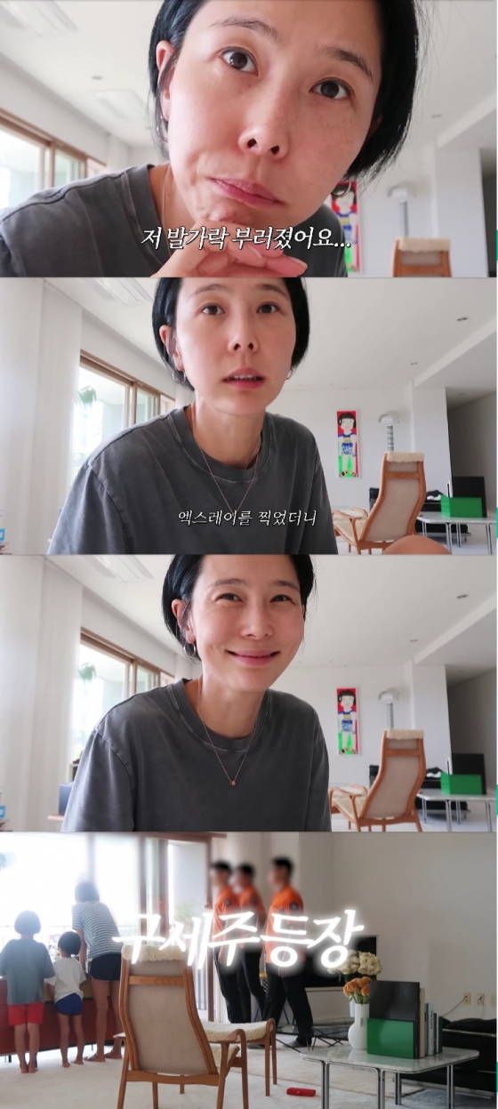 방송인 김나영이 발가락 골절 부상을 입었다고 밝혔다.