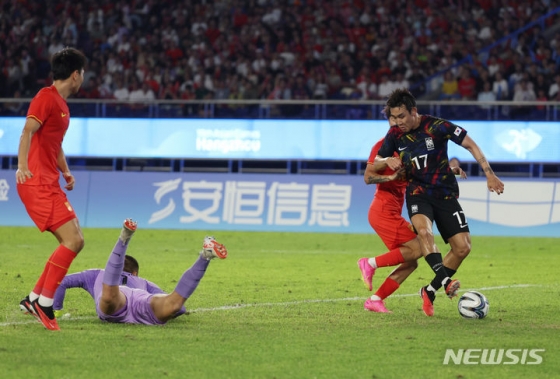 전반 14분 송민규의 크로스를 중국 수비진이 걷어냈고 세컨드 볼을 잡아낸 고영준이 과감히 슛을 날렸으나 빗맞아 골키퍼 품에 안겼다.