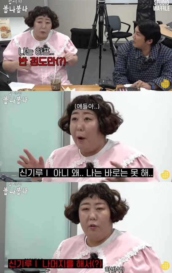 반면 MC 신기루는 같은 질문에 "나는 하프, 반 정도만 가능하다. 상반신까지 가능하다"는 화끈한 답변을 내놨다.