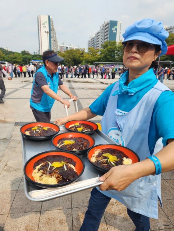 임영웅 팬클럽 영웅시대 웅기종기 팬밴드는 10월 2일 제27회 노인의 날을 맞아 경기도 광명시 실내체육관에서 짜장면 배식 봉사를 했다.