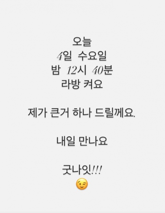 16기 영숙은 4일 "오늘 4일 수요일 밤 12시 40분 라방 켜요. 제가 큰 거 하나 드릴게요. 내일 만나요 굿나잇!!!"이라고 전했다.