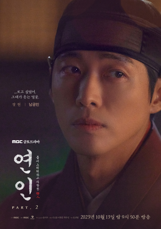 이런 가운데 5일 '연인' 제작진이 이장현과 유길채의 파트2 캐릭터 포스터를 공개했다. 파트1 당시 캐릭터 포스터보다 한층 더 깊고 절절한 감정선, 이를 디테일하게 담아낸 남궁민X안은진 두 배우의 극적인 표현력이 감탄을 자아내며 도저히 눈을 뗄 수 없게 만든다.