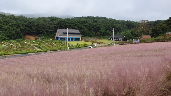핑크뮬리 꽃밭 사이를 난 오솔길을 걸으며 어깨높이 까지 자라는 핑크뮬리 꽃밭에 파뭍이기도 하고 포토 포인트에서 기념촬영을 한다면 나름 멋진 인생샷을 남길 수 있다. 가을 햇빛에 받은 꽃은 더욱 빛난다. 입장료는 4000원.