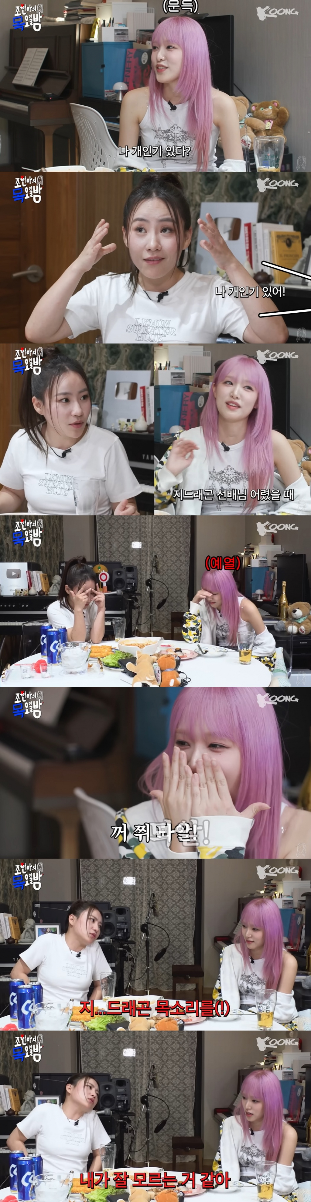 그러자 최예나는 "나 개인기 있다"면서 "지드래곤 선배님 어렸을 때 꼬마 래퍼 시절이다"라고 말했다. 조현아는 "눈 가리고 듣겠다"라며 잔뜩 기대에 찬 눈빛을 드러냈다.