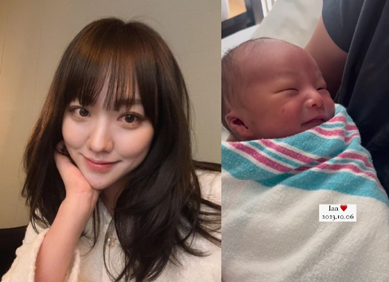 눈도 제대로 뜨지 못한 갓 태어난 아들은 품에 안겨 있다. 아기는 귀여운 눈웃음까지 지어 보여 랜선 이모, 삼촌들의 마음을 사로잡았다.