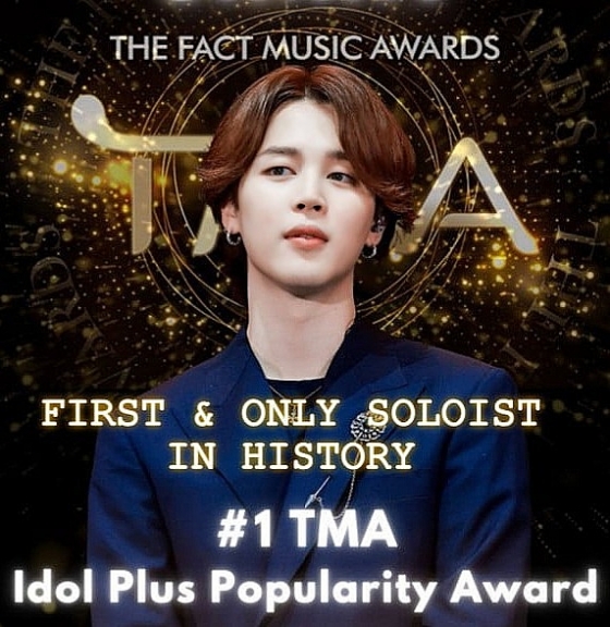 솔로 앨범 발매와 동시 글로벌 팬들의 뜨거운 응원과 지지로 이처럼 월드클래스 인기를 입증한 지민은 100% 투표로 선정되는 아이돌플러스 인기상의 솔로 가수 최초 수상으로 세계적 입지를 공고히하며 인기를 빛내고 있다.