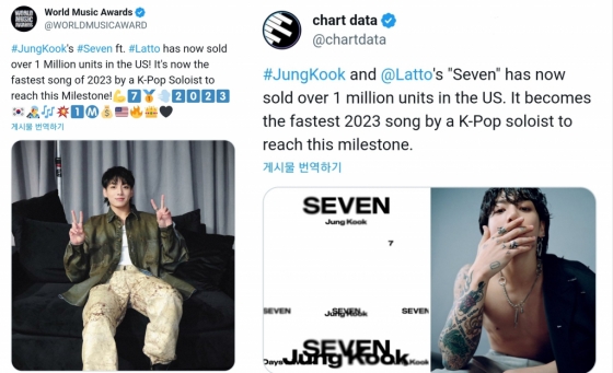 또한 미국에서 71일 만에 100만 판매고를 달성한 점에서 'Seven'의 뜨거운 현지 인기와 정국의 막강한 보컬 파워도 엿보게 했다.