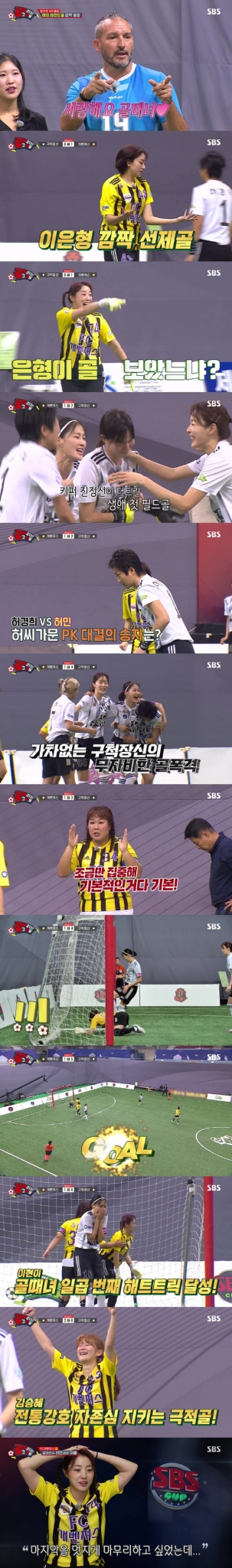 지난 11일 방송된 SBS '골 때리는 그녀들'(이하 '골때녀')은 닐슨코리아 또한 수도권 기준으로 시청률 5.8%, 화제성 지표인 2049 타깃 시청률 2.2%로 2049 시청률 수요 전체 1위, 가구 시청률 수요 예능 1위를 차지했다. 특히, 컵대회 사상 최초 해트트릭을 만들어내는 이현이의 여섯 번째 골 장면에서 최고 분당 시청률이 8.1%까지 치솟았다. 전국 기준 시청률은 5.2%를 기록했다.