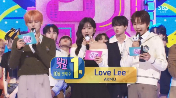 이날 악뮤는 지난 8월 21일 발매한 네 번째 싱글 'Love Lee'와 동명의 타이틀곡으로 '인기가요' 1위에 올랐다. 'Love Lee'는 청량하고 밝은 에너지를 담은 트랙으로 누구나 쉽게 접할 수 있는 소재를 악뮤만의 톡톡 튀는 감성으로 풀어냈다.