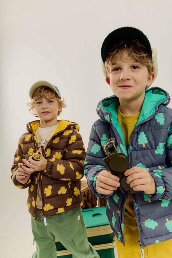 대표 상품인 고아웃 친환경 경량 패딩은 나무와 다람쥐 등 숲 속 안에 있는 듯한 위트 있는 전판 그래픽 디자인이 돋보이는 제품으로 패딩점퍼와 패딩베스트로 구성돼 기온에 따라 폭 넓게 선택 가능하다.