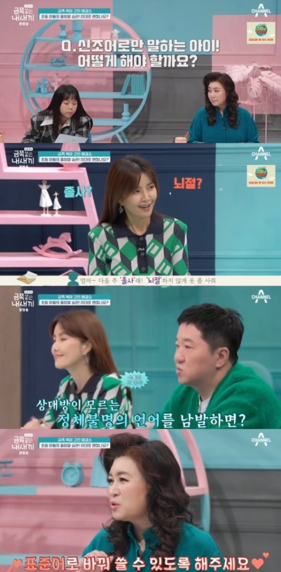 이날 방송에는 '금쪽 육아 고민 해결소'에 '신조어로만 말하는 아이! 어떻게 해야하나요?'라는 사연이 접수됐다. 홍현희는 "초등학교 6학년 남자아이를 키우는 엄마다. 애가 올해 들어 인터넷 용어나 신조어를 너무 많이 사용한다. 제가 아이의 말을 다 알아듣지 못하고 '뭐라고 한거야?'라고 물으면 재밌어서 더 사용하는 것 같다"며 사연자의 고민을 전했다.