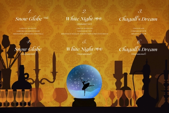 트랙리스트에 따르면, 이번 앨범에는 타이틀곡 'Snow Globe'(스노우 글로브)와 'White Night (백야) (Remaster ver.)'(화이트 나이트), 'Chagall's Dream'(샤갈스 드림)'을 비롯해 3곡의 인스트루멘털 음원까지 총 6곡이 수록된다. 이번 트랙리스트에도 스노우볼 아트워크가 담겨 겨울 분위기를 물씬 예고하고 있다.