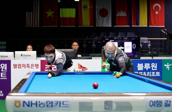 이번 대회 최원준은 어딘가 달라보였다. 128강과 64강을 연속 셧아웃 승리로 통과했다. 32강에서 올 시즌 개막전 우승자이자 '튀르키예 간판' 세미 사이그너(휴온스)마저도 3-0으로 완파했다. 김영섭과 김현우를 잇따라 꺾은 그는 4강에서 지난 대회 우승자이자 한국 3쿠션의 간판 최성원(휴온스)과 격돌했다.