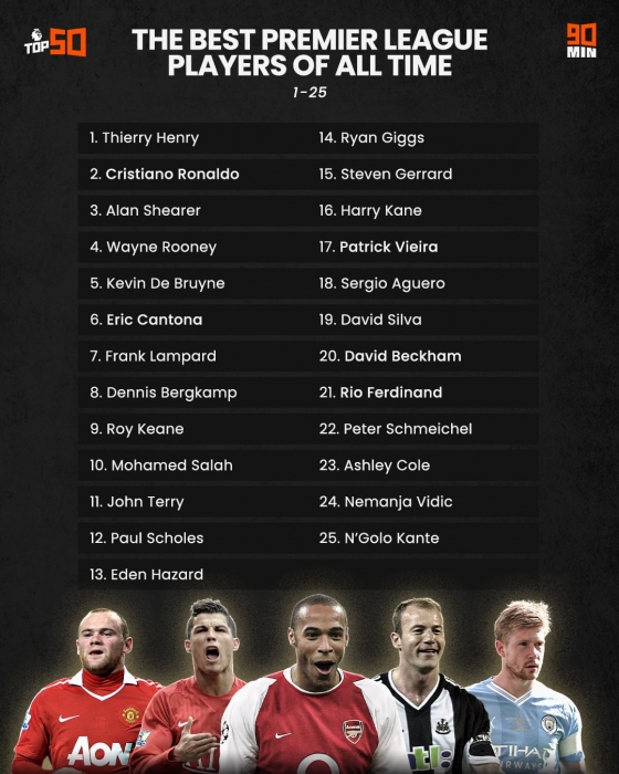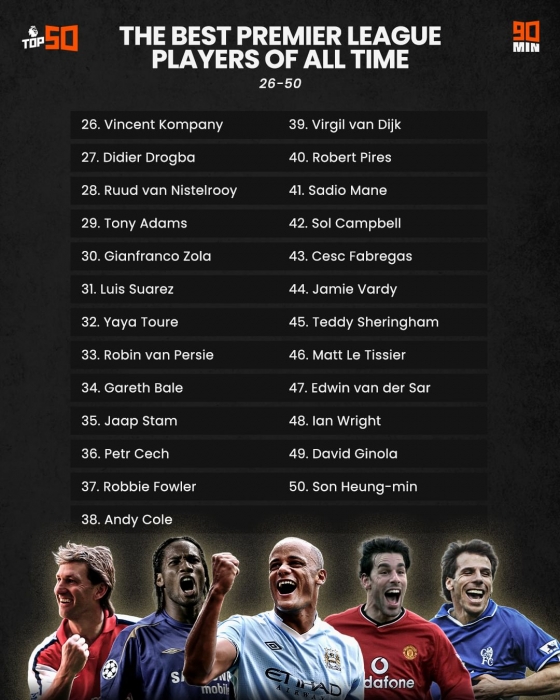 영국 매체 ‘90min’은 14일 “프리미어리그(PL)는 많은 선수들이 거쳐 갔다. 역대 최고가 있다”며 50인을 선정했다.