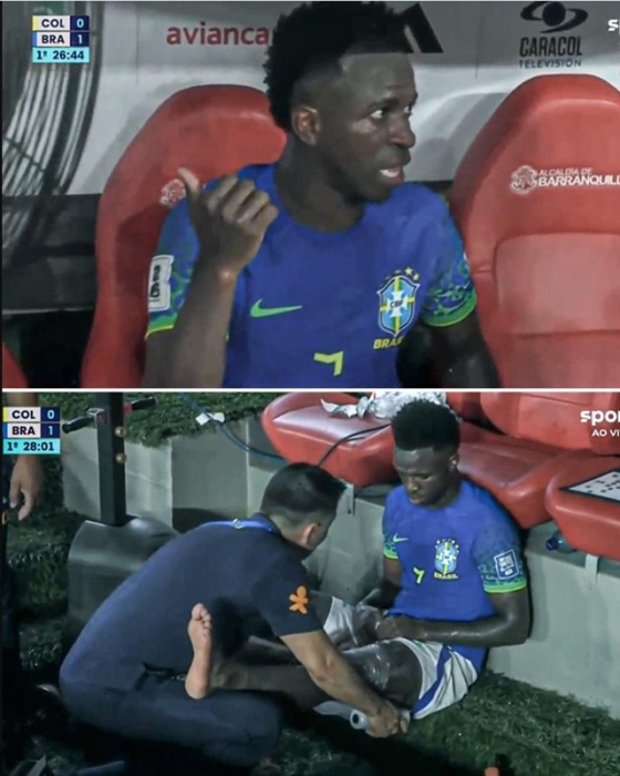 비니시우스는 전날(17일) 콜롬비아 비랑키야에서 열린 2026년 북중미 월드컵 남미예선 5차전 콜롬비아와 원정경기에 선발 출전했다. 하지만 전반 27분 불의의 햄스트링 부상을 당해 교체아웃됐다. 비니시우스는 벤치로 들어가 치료를 받는 와중에도 상당히 고통스러워했다.