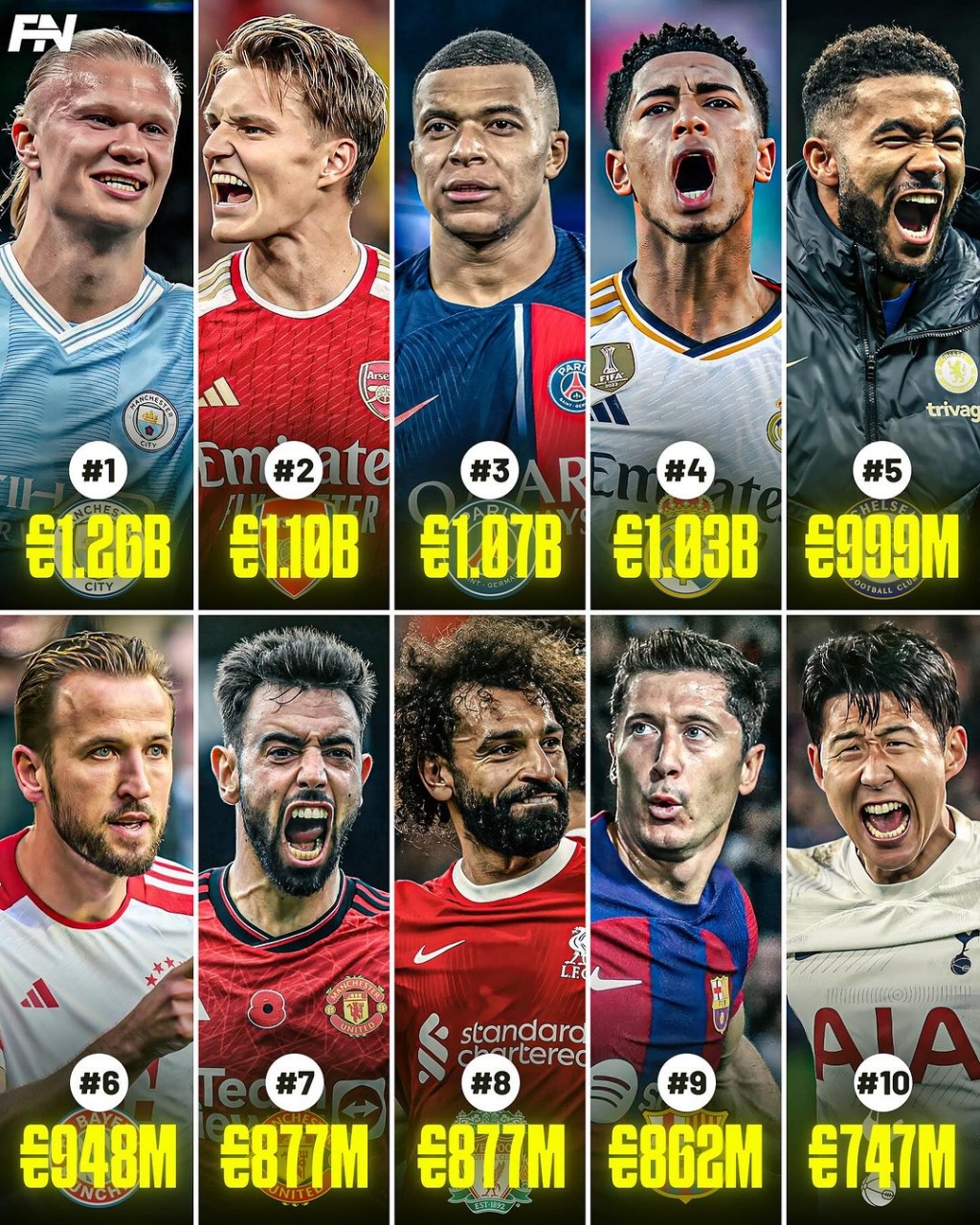 맨시티는 엘링 홀란드, 필 포든, 로드리, 베르나르두 실바, 후벵 디아스, 요수코 그바르디올, 훌리안 알바레스, 잭 그릴리시 등을 보유하면서 선수단 가치 12억 6,000만 유로(약 1조 7,820억)를 기록했다.