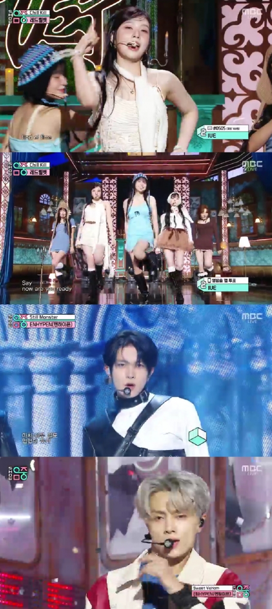 또한 '음중'에서 다양한 컴백 무대가 이어졌다. 먼저 레드벨벳은 'Chill Kill' 무대로, 드라마틱한 퍼포먼스를 선보였다.