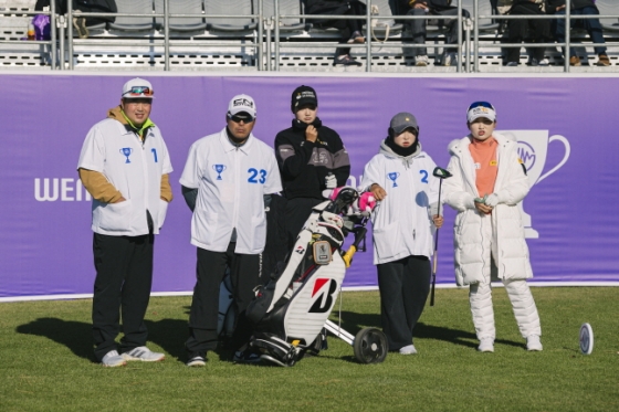 이예원은 미소를 지었다. 함께 하는 친구가 있어 상대적으로 덜 힘들게 경기를 치렀다고 했다. "체력적으로 힘들 것 같은데 이벤트 대회이기에 친구가 캐디를 해주고 있어 재밌게 하고 있다"고 말했다. 그가 말한 친구는 바로 동갑내기 선수 유서연(20·아웃백 골프단).