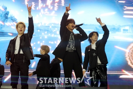 더 램페이지(THE RAMPAGE from EXILE TRIBE)가 18일 오후 경기도 고양시 킨텍스에서'2023 THE RAMPAGE 1st FAN CONCERT in SEOUL THE BEGINNING'를 열고 멋진 무대를 선보이고 있다. 2023.11.18