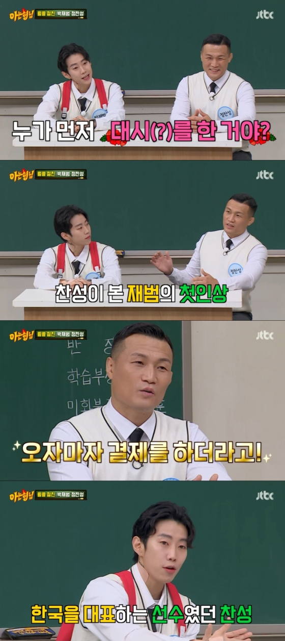 이날 박재범은 정찬성과 친해진 계기에 대해 "나는 어렸을 때부터 격투기를 좋아해서 정찬성의 팬이 돼서 배우려고 체육관을 찾아갔다"고 했고, 정찬성은 "난 너무 좋은 인상을 받았던 게 그때 다니던 연예인분들은 그냥 운동하려고 했는데, (박재범은) 오자마자 결제하더라. 10년 전에는 그랬다. 처음에 '혹시 결제는 어떻게 해야 하냐'라며 약간 어물쩍어물쩍하는 사람들이 있다"고 말해 궁금증을 안겼다.