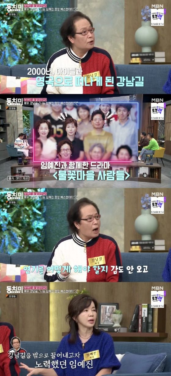 이날 강남길은 "2000년 아이 둘과 영국으로 떠났다. 4년간 생활하는데 경제적으로 여유가 없어서 힘들었다. 아이들을 대학까지 못 보내겠더라. 4년간 공백기를 보내고 작품 활동을 재개했다"며 "'물꽃마을 사람들'로 컴백하게 됐는데 임예진 씨와 부부 역할을 했다"고 밝혔다.